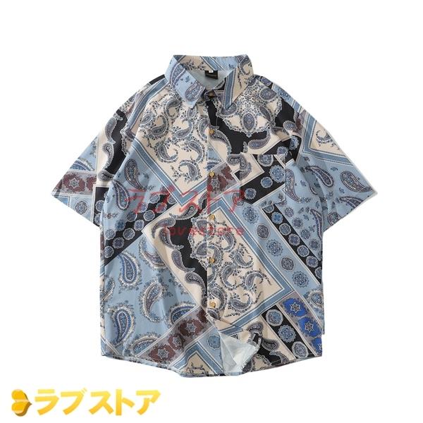 原宿系 レトロ プリント カジュアル 半袖 シャツ レディース メンズ ファッション